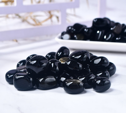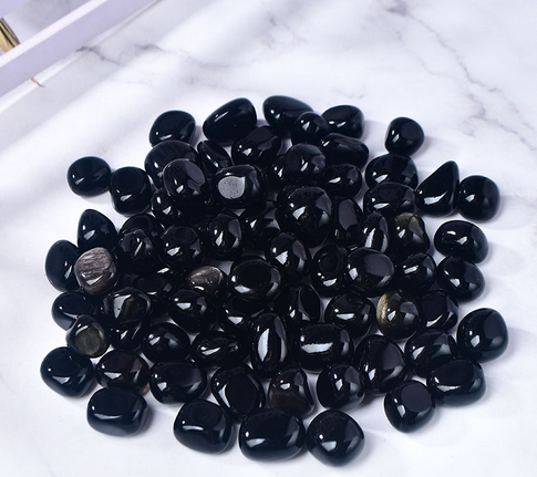 As these are natural Black Obsidian stones, they may exhibit slight imperfections or variations in size and color. These natural characteristics enhance their unique appeal and authenticity. Some stones may exhibit a subtle golden sheen when exposed to light, which is a natural characteristic of certain types of obsidian.