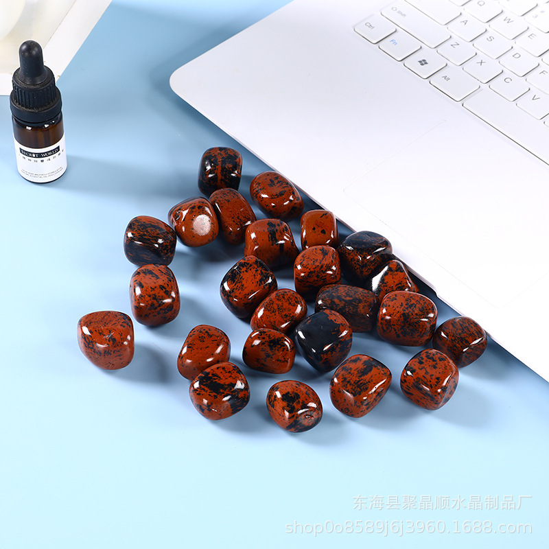 To maintain the luster and energy of your Mahogany Obsidian stones, gently cleanse them with mild soap and water. Recharge them by placing them near other grounding crystals or in contact with the earth.