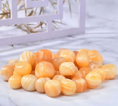 To maintain the luster and energy of your Orange Calcite stones, gently cleanse them with mild soap and water. Avoid prolonged exposure to direct sunlight, as it may cause the color to fade slightly over time. You can recharge them by placing them near other crystals or in indirect sunlight.