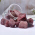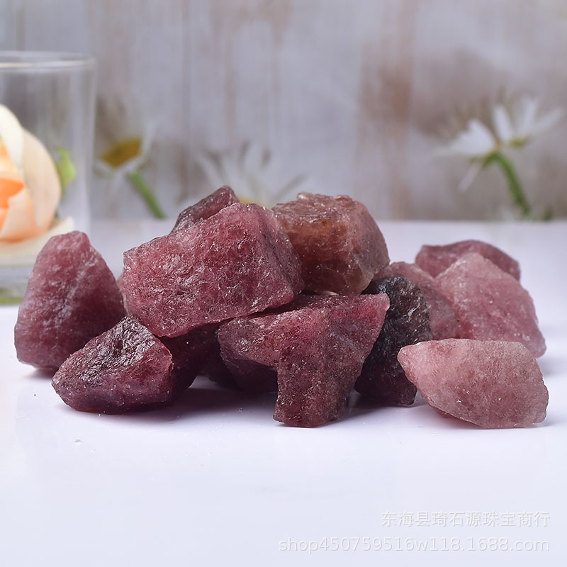 To maintain the beauty and energy of your Strawberry Quartz chunks, avoid prolonged exposure to water, harsh chemicals, or extreme temperatures. Gently cleanse the stones with a soft cloth. You can recharge the stones by placing them in moonlight or sunlight. Store the stones in a safe place when not in use.
