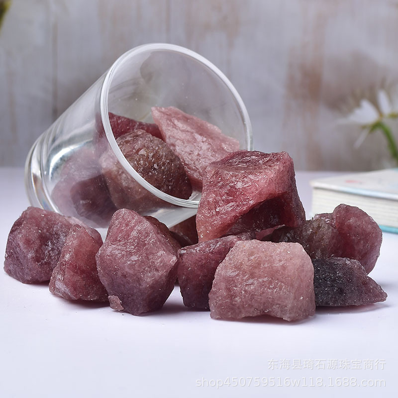 Genuine Strawberry Quartz: Each chunk is a natural piece of Strawberry Quartz, known for its inclusions that resemble strawberry seeds, giving it a unique and beautiful appearance.