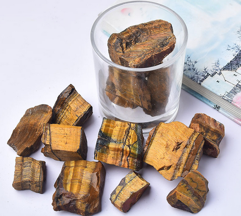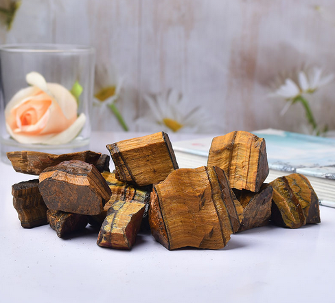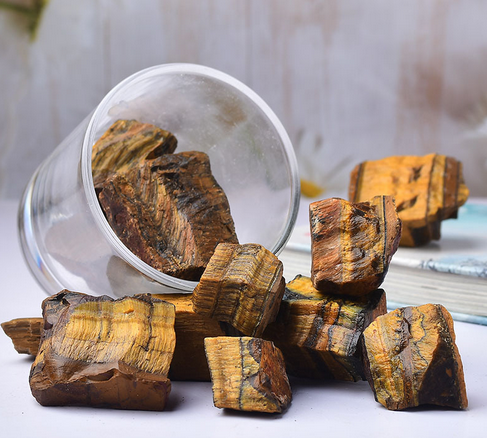 Authentic and Untreated: Genuine Tiger’s Eye crystals in their natural, raw state.