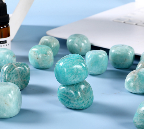 To maintain the beauty and energy of your Amazonite stones, avoid prolonged exposure to water, harsh chemicals, or extreme temperatures. Gently cleanse the stones with a soft cloth. You can recharge the stones by placing them in moonlight. Store the stones in a safe place when not in use.