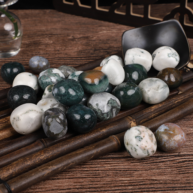 Brief Overview: Connect with nature and invite abundance with these Tumbled Moss Agate Stones. Their lush green inclusions and polished surface offer a grounding energy, perfect for promoting growth, attracting prosperity, and fostering a sense of peace and tranquility.
